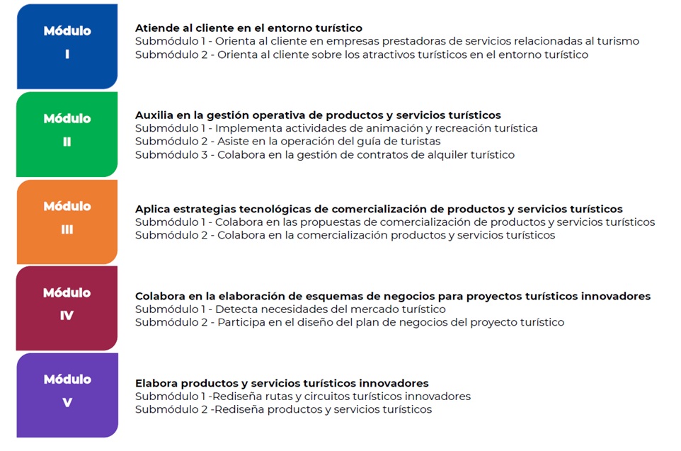 Durante el proceso de formación de los cinco módulos, los estudiantes de la carrera técnica en Gestión e innovación turística desarrollarán o fortalecerán las siguientes competencias laborales: